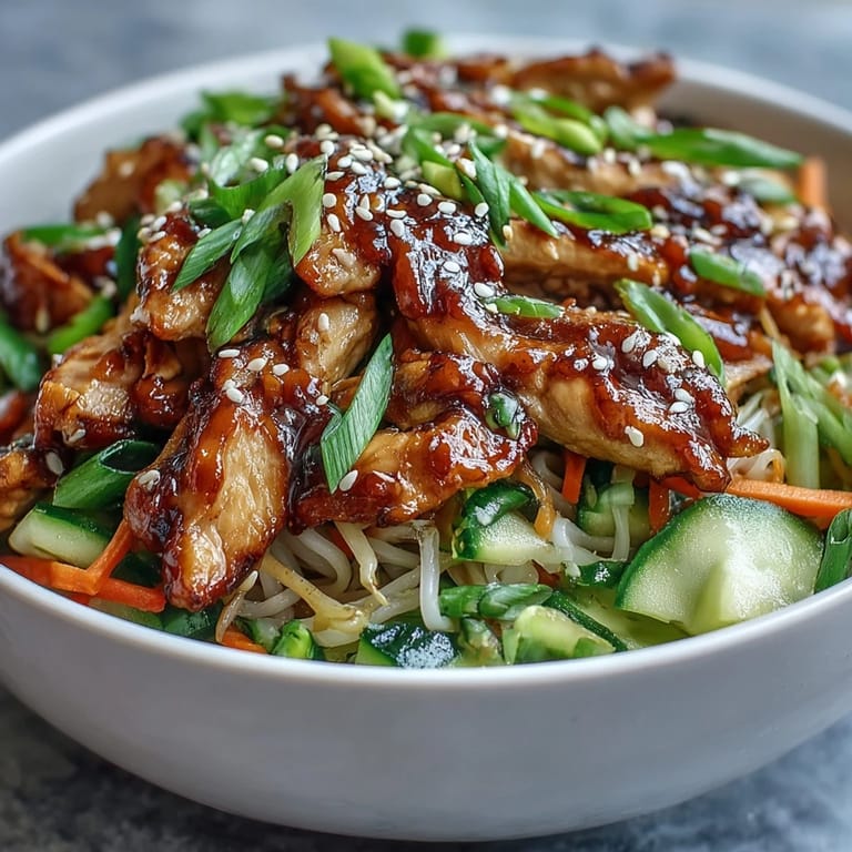 The vegetable component is honestly flexible—this bowl doesn't need these exact vegetables to work. I've made it with shredded cabbage, snap peas, or even roasted broccoli when that's what was in my fridge, and it's been delicious every time. The key is maintaining some textural variety, so you want at least one crisp element, something soft from the noodles, and the protein from the chicken. Think of the vegetables as your opportunity to use up what you have rather than a strict requirement to follow exactly.