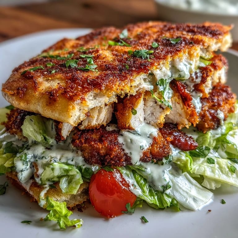 Pin This Indulge in a delightful fusion of textures and flavors with these Crispy Herbed Chicken Caesar Pitas. Succulent chicken breasts are coated in a fragrant herb and Parmesan crust, fried until golden and crisp, then paired with a fresh, creamy Caesar salad. Tucked into warm pita pockets, this meal offers a satisfying and sophisticated twist on a beloved classic that is perfect for both quick lunches and easy weeknight dinners.