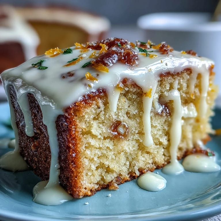 I love serving this cake with a small pile of fresh berries on the side, their tartness plays nicely against the sweet icing. A dollop of lightly sweetened whipped cream or a scoop of vanilla ice cream turns it into a more substantial dessert. For brunch, it's perfect alongside strong coffee or a pot of Earl Grey tea.