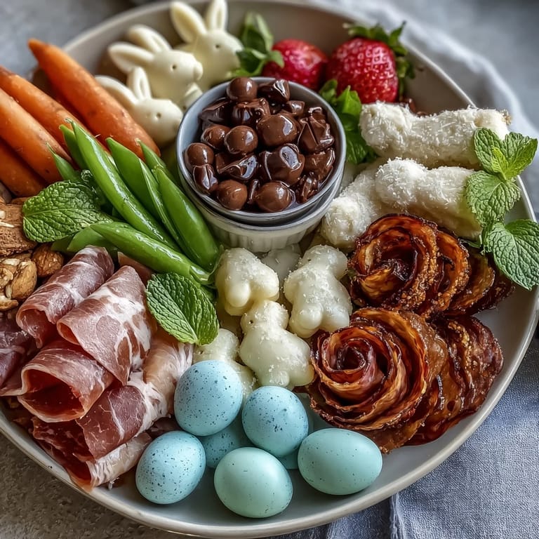 On Easter morning, my friend and I built the board together while sipping coffee, trying to keep the marshmallow chicks upright. We challenged each other to make the cutest baskets using the little ramekins—her prosciutto rolls looked like tiny bunnies, and mine ended up packed with strawberries and pastel chocolate eggs. We giggled about who went overboard with herbs, but everyone agreed the burst of green brought spring to the table. That collaborative spirit made the board a conversation starter at brunch rather than just a snack.